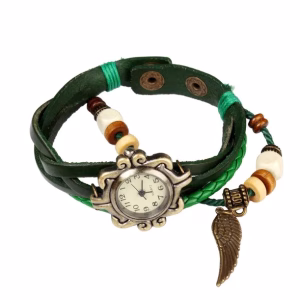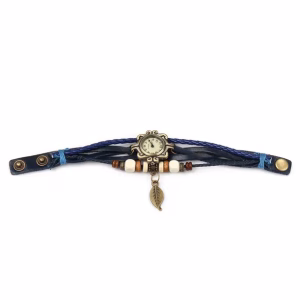 Beautiful Bohemian Style Retro Handmade Leather Tree Leaf Women's Watches Blue
